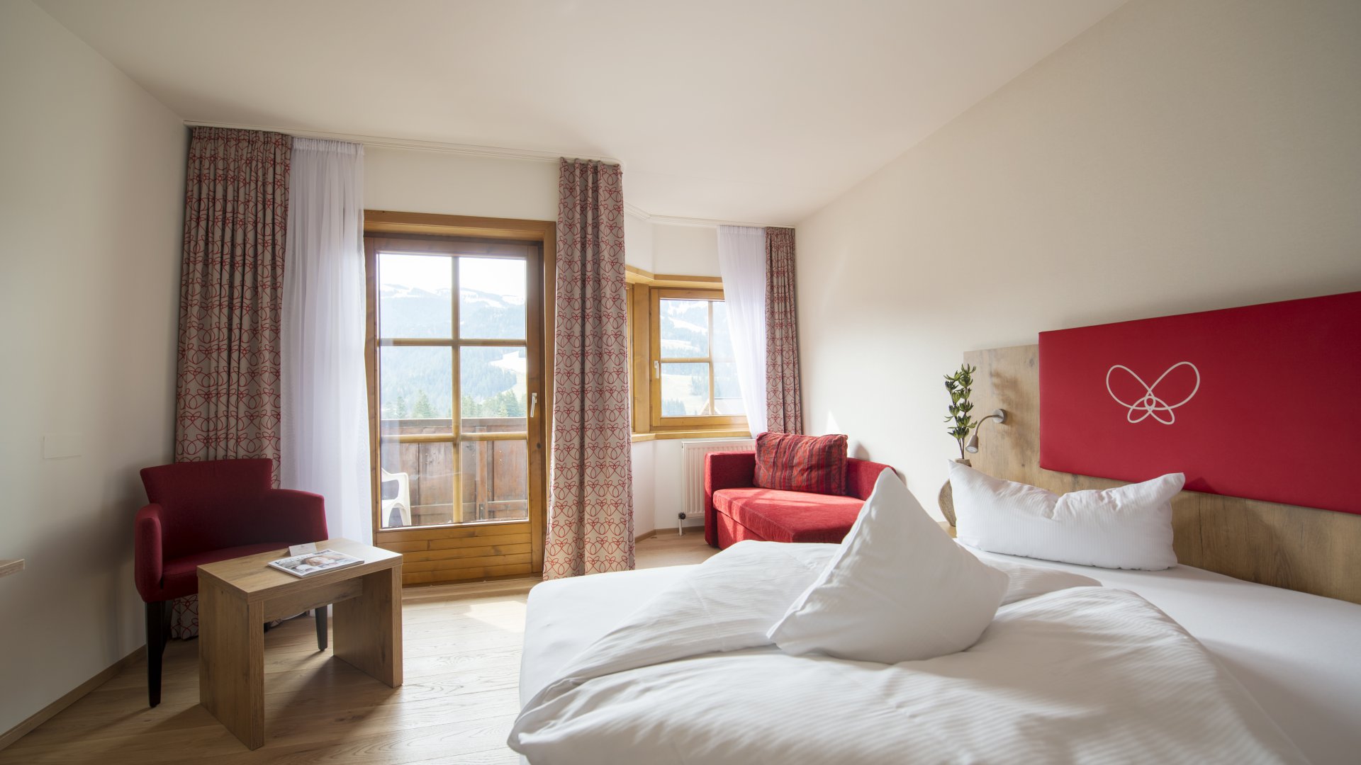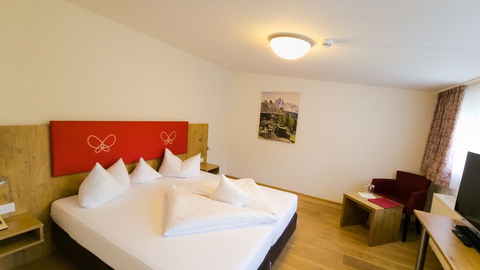 Die komfortablen eingerichteten Doppelzimmer Superior mit Panoramablick auf den emporragenden Wilder Kaiserfels sowie das Ski- und Wandergebiet der Kitzbüheler Alpen verfügen über ein Badezimmer mit Duschwanne, ein separates WC, Kleiderschrank und praktische Ablagen, Minikühlschrank, einen 43-50 Zoll Flatscreen Fernseher mit Streaming Dienste wie Amazon Prime und Netflix. Einige Zimmer sind auch mit einer ausziehbaren Couch ausgestattet.
